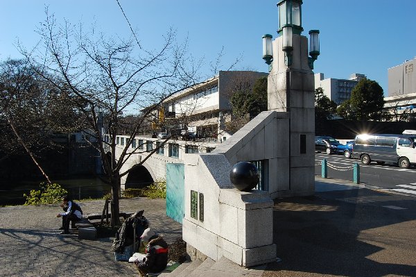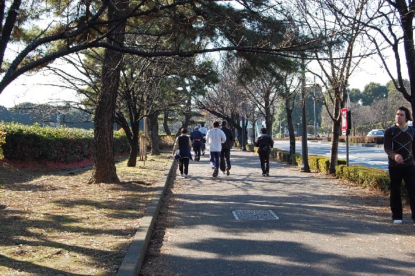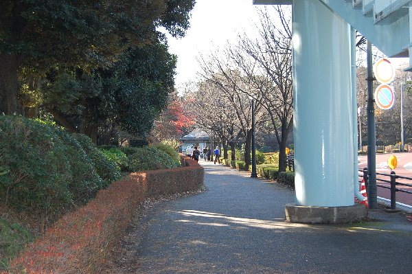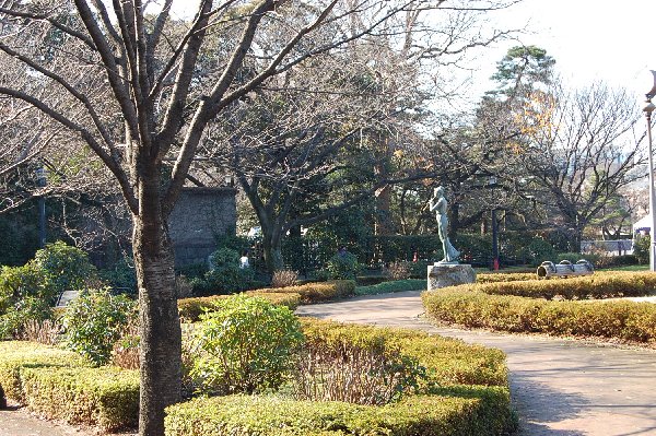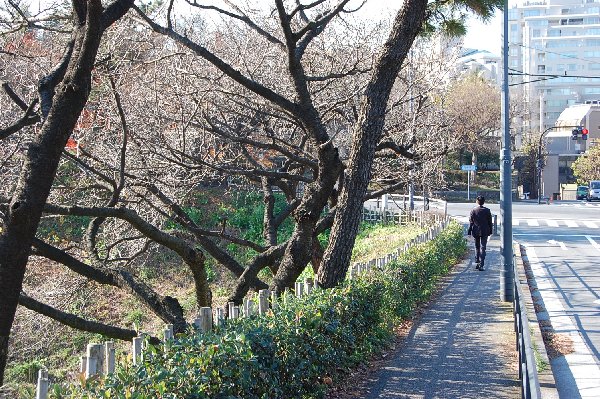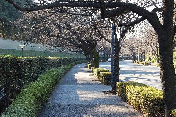 アクセス上の都合からスタートはここ 東京メトロ竹橋駅 a1出口前 しばらく行くと道路を挟んで右手に近代美術館が見えてくる[約65m] 走ってる人は結構多い[約162m] 先に見えるのが乾門前の派出所[約267m] 左手は北桔梗門から続く天守閣跡[約286m] 派出所前の広場[約361m]森の調べ像 塀沿いの道がしばらく続く[約581m] 開けた左手が半蔵濠[約1.06km] 内堀通りとの信号を左折する[約1.08km]